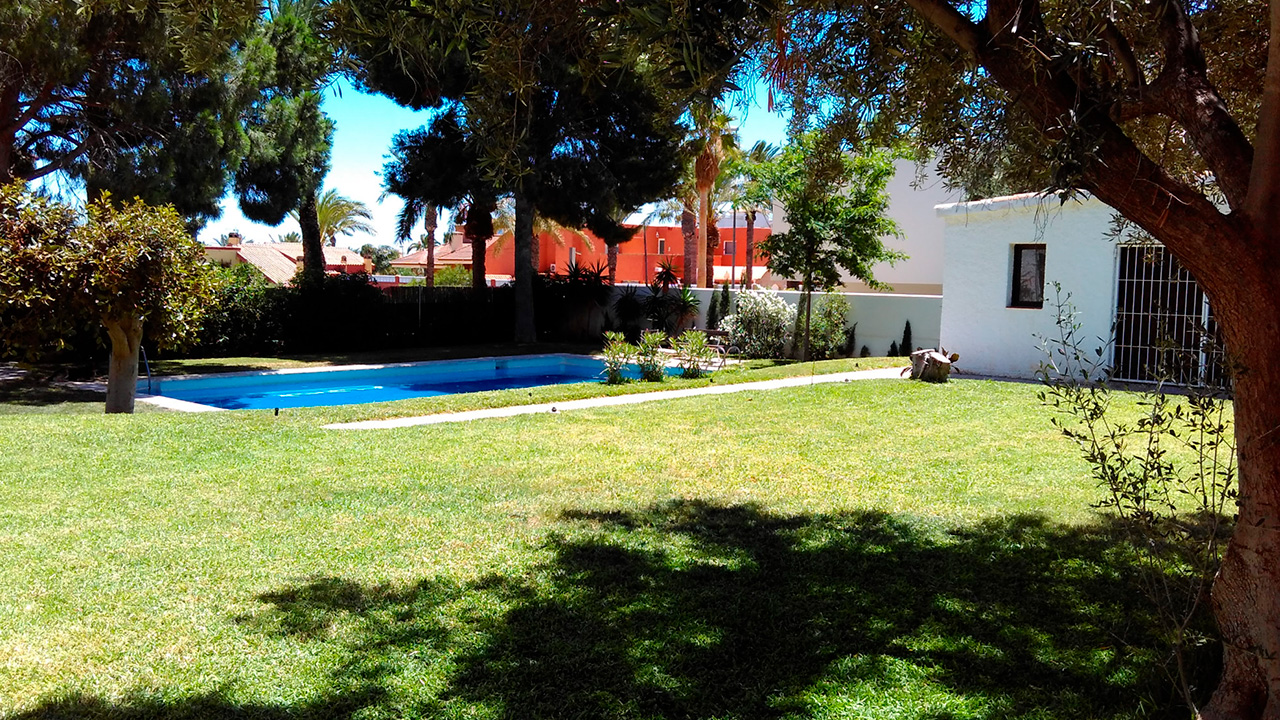 Vivienda unifamiliar con jardín y piscina en Urbanización de Aguadulce.