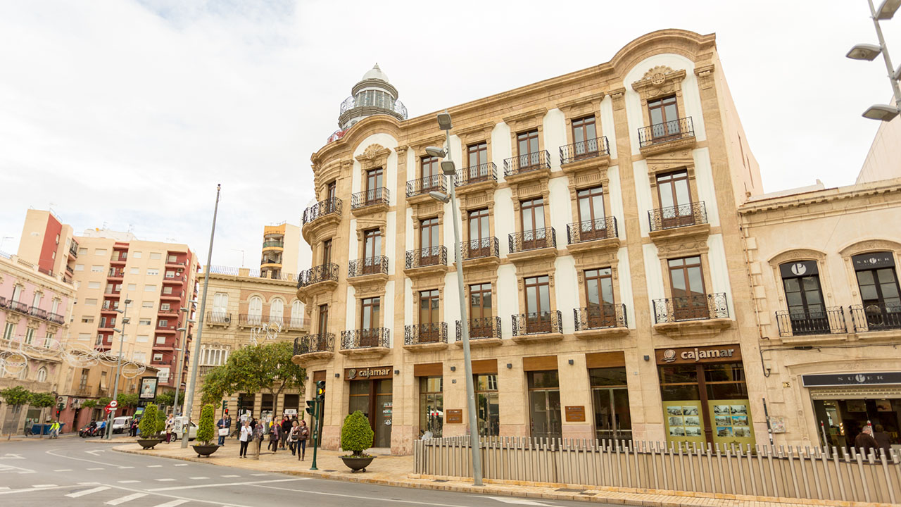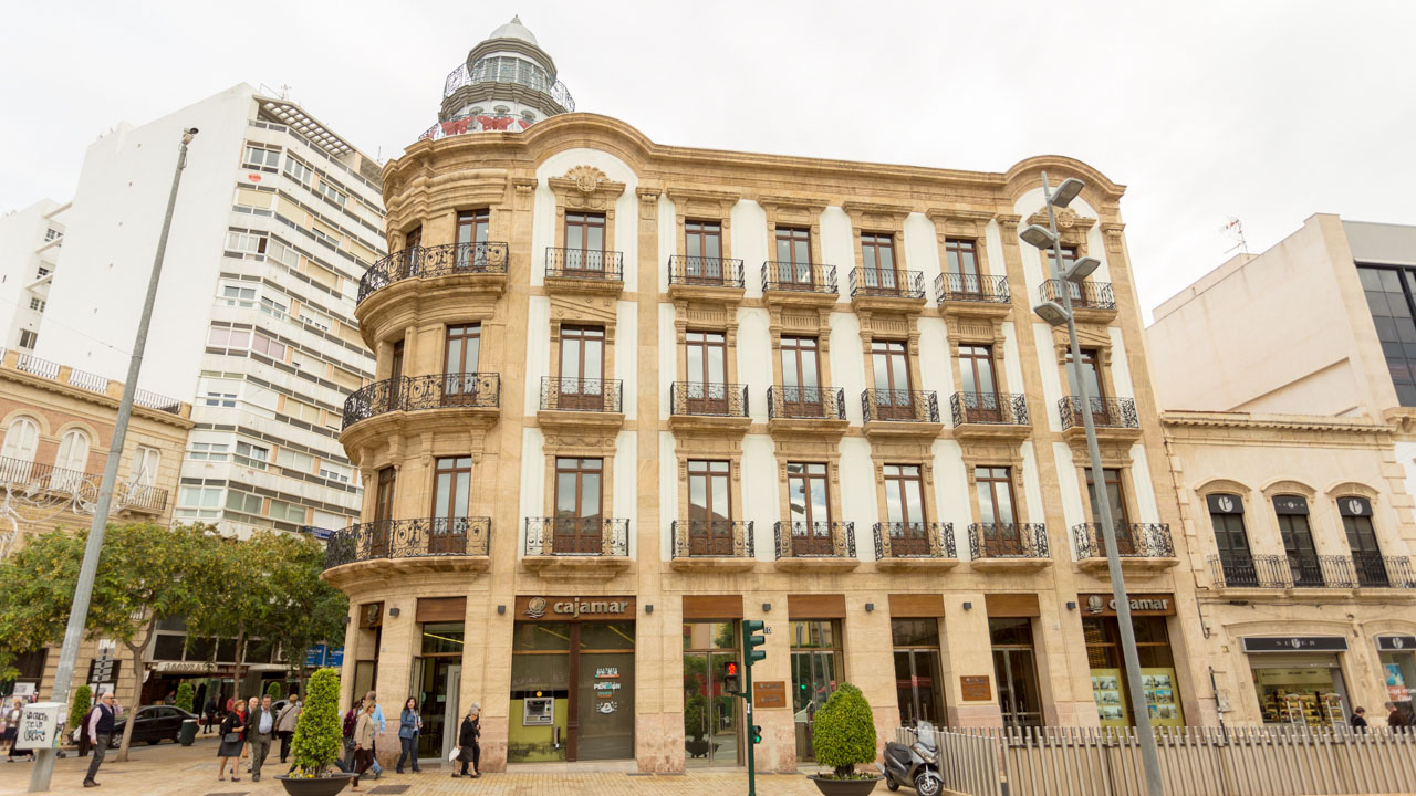 Junto a la Puerta Purchena de Almería en la zona alta del Paseo de la ciudad, se encuentra muy cerca de la Plaza de San Sebastian.